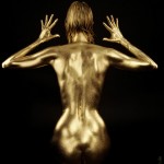 Ein solches Fotoshooting im Studio ist etwas aufwendig. Allein die Bemalung des ganzen Körpers mit der hautfreundlichen goldenen Farbe (Babyölbasis) benötigt einige Zeit – ca. 20 – 30 Minuten, je nach Körpergöße und ob die Haare mit einbezogen werden. Das Gesicht bekommt immer ein separates Makeup und wird nicht „überlackiert“.